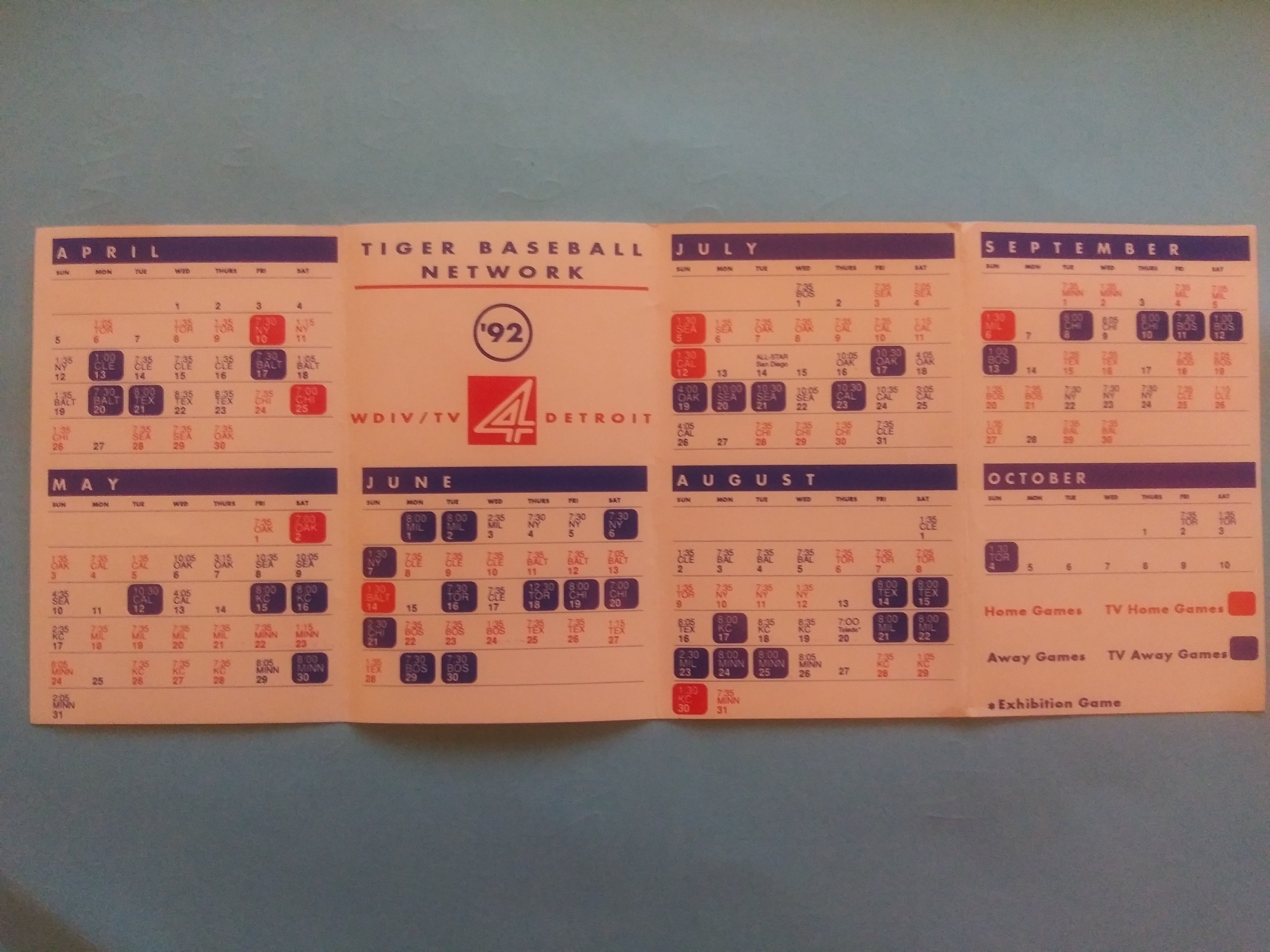 Detroit Tigers, 1992 7-Eleven/WDIV TV Sponsored Pocket Schedule